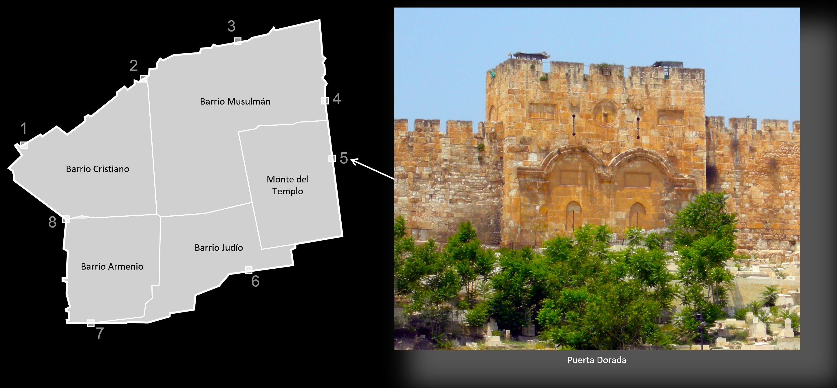 1. Nueva · 2. Damasco · 3. Herodes · 4. Leones · 5. Dorada · 6. Estiércol · 7. Sion · 8. Jaffa