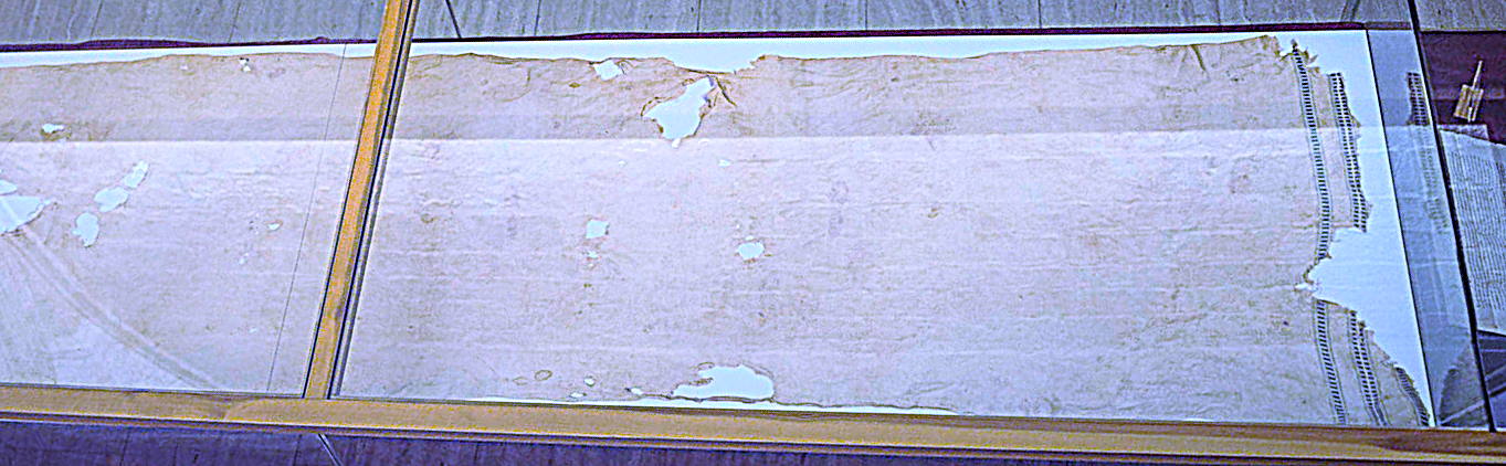 Las dimensiones, 4,32 m de largo por 0,90 m de ancho, son casi idénticas a las de la Sábana Santa de Turín (4,40 por 1,10).