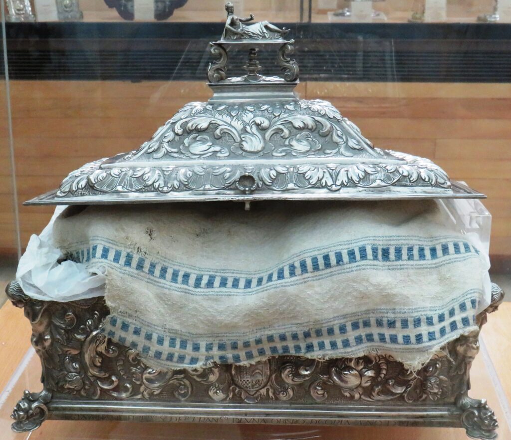 Jesús fue enterrado con rapidez: en tres horas José de Arimatea tuvo que reclamar el cuerpo de Pilatos, obtener el permiso para enterrarlo, trasladarlo hasta el sepulcro, amortajarlo y cerrar la tumba. En aquel contexto, pudo haber tomado un mantel de estas características, que es perfecto para envolver un cuerpo.